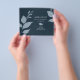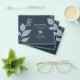 Den här enkla eleganten sparar datumet med moderna botaniska löv i dammblått. Använda mallen fält om du vill uppdatera dina uppgifter vitt över en midnattsblå bakgrund. Byt färg i löven och bakgrunden för att passa ditt bröllop-tema. Kortet återgår till en komplementär färg. Om du vill se hela bröllop-papperskorgen går du till www.zazzle.com/dotellabelle