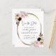 Budgeterad inbjudan till Rosa ros Guld Metallic Bröllop spara datum... Vår prisvärda blommigt Spara datumkortet innehåller buketter av vackert rosa ros som är böjda runt ett faux guld metallisk oval ram som skapar en elegant gräns för inbjudningstexten i. Kortets baksida innehåller din returadress, bröllop webbplatsinformation och en QR-kodgrafisk mall som du kan ersätta med en egen (eller ta bort). All exempeltext (förutom textbilden Spara datum) på båda sidor av kortet kan enkelt revideras med egna uppgifter om anpassningsmallen.