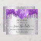 Ett giftigt och trendig Spara datumkortet för en 18:e (eller någon ålder) födelsedagsfest. En faux silver tittar bakgrund som dekorerats med lila faux glitter och ballonger. Anpassa och lägg till datum och namn/ålder. Texten: Spara datumet skrivs med ett stort trendig-handskript i stil.