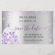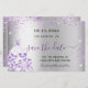 Ett giftigt och trendig Spara datumkortet för ett bröllop. En modern faux-metallisk tittar i silver som dekoreras med lila faux glitter damm och en klänning. Anpassa och lägg till ett datum och namn. Black and lila färgad brev. Texten: Spara datumet skrivs med ett stort trendig-handskript i stil.