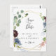Den här burgunska guld-geometrin sparar datumet som vykort är perfekt för ett vinterbröllop. Eleganten Boho-designen har vattenfärgsflottan, rosa och vin-skuggade blommor med konstnärliga, genomträngande detaljer.