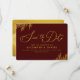 Det här Spara datum meddelande-kortet har en burgundisk bakgrund, guld pampas-gräs och en elegant guld foliage-bakgrund som är perfekt för Fall bröllopssäsong.