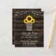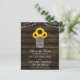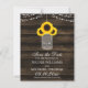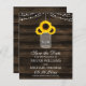 I den här budgeten har spara datum meddelande en mason burk med solblommor hängande från strutsen ljus på en rustik lada-bakgrund.