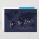 Världskartan för Rosa och koppar-färg vid marinblått och Ro sparar datumkortet för ett destinationsbröllop med en rörlig hjärtmarkör och ditt förlovning foto bredvid söt och elegant modern typografi som är söt och minimalistisk. Perfekt för giftermål, strand, ö, stad, berg och äventyr över hela världen. Klicka PÅ ANPASSA YTTERLIGARE om du vill flytta hjärtat, ändra bakgrund och text färg, ändra typsnitt. Kolla vår designerbutik för att få ordning på saker!