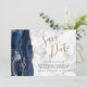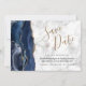 Spara datum för den moderna marmor för blått Guld- Inbjudningar