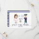 Elegant guld och marinblått nautiskt mönster med marinblått rand, en halvgenomskinlig form för information med faux guld ram, ett faux guld foil anchor. Två söta sjömän, två hjärtan och handskriftstypografi "spara datumet". Använda Anpassa verktyg om du vill lägga till din information. Om du vill ha matchande artiklar kan du besöka min Nautical Collection på Rand Guld.
