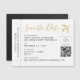 Gästerna kommer att visning det här söta resetemat mini-boardingkortsmagneter på kylskåpet när de kommer som en del av din roligt-målbröllop, med undantag för det datum som fastställts. Med vårt romantiska guld-flygplanssystem och roligt biljett typsnitt skapar perfekten en kombination av elegant, modernt, retroaktivt, roligt och formellt så att de kan samordna sig med nästan vilket annat badbröllop eller resetema som helst för att spara datumkortet. Dessa minimagneter är storleka av ett vykort och behöver ett kuvert till posten. Dra in dem med ett större kort, eller lämna ut dem till brudens sida och familjen för ett unikt bröllop-keepé som kommer att påminna dem om resa de får när de går i bröllop!