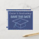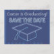 Här är en ny designidé för studenten att spara datumkortet...Neon! Utformningen ser ut som en nyare studentmössa tillsammans med en nyteckning som säger "Spara datum". Låt er familj och vänner veta att spara datumet för en ceremoni i studenten, utmärkelser, party eller firande.