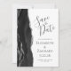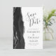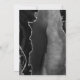 Det moderna bröllop spara datum-kortet från elegantens lämnat kant har en svart vattenfärgad agate gräns som trimmas med faux silver glitter. Med anpassadet kombineras grått-handskrift, tryckplåt och kursivt typsnitt på vit bakgrund. Den omvända sidan har en matchande svartvit och silver agate-design.