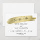 Elegance! Romantisk utformning och elegant med faux guld-penseldrag, ett fantastiskt kalligrafiskt skript "spara datumet". Använda Anpassa verktyg om du vill lägga till din information. Om du vill ha matchande artiklar kan du besöka Glam Guld Stroke and Calligraphy Collection.