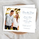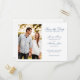 Elegant Minimal Bröllop spara datum-vykort för inbjudan innehåller ett snyggt-skript med ett dammigt blått färg-tema. Det här biet i bröllop-papperet är redot för dig att anpassa dig med ditt eget foto och information om din händelse. Ändra teckensnittet stilar eller färg och gör det till eget, eller lämna det som du ser här. En del av ett ständigt växande sortiment av bröllop-stationär, bläddra i Monogram och Blommigt Vapensköld Bröllop Suite för matchande produkter.