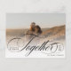 En calligrafi av ett elegant-skript tillsammans sparar datumet bröllop, perfekt för elegant, snyggt bröllop,lägg till 2 foton