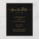 Personligen för budgetskript minimalistisk modern icke-fotosvart elegant och guld bröllop spara datum-annonsering till ett rimligt pris för lågbudgetflygare. En ren designmall har en kursiv elegant med texten "Spara datum" i guld på den svarta bakgrunden färg. ***NOTERA! *** BUDGETEN PAPPER/FLYER ÄR PAPPER. INGA ENVELOPES INKLUDERADE.** UPPGRADERA PAPPRA FÖR EN TEKER-PAPPER. *** Traditionell kartstock med kuvert: https://www.zazzle.com/elegant_script_minimalist_gold_and_black_wedding_save_the_date-256337765913459847 Den här klassiska kortets perfekt för ett par som vill spara datumet med en modern beröring, utan foto. Kontakta designern om du behöver hjälp eller matchande artiklar.