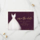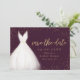 möhippan elegant sparar datumkorten med vattenfärgsvit bröllop-klänning med gnistra faux guld glitter sparar datumskriptet på burgundröd bakgrund.