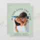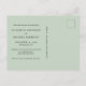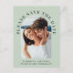 Modern vykort för grönt bröllop spara datum med ditt foto i en båge ram omgiven av "Spara datum" i elegantens typografi. Lägg till ditt första namn, datum och plats för bröllop. På motsatt sida anpassar du datuminformationen i enkel typografi.