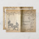 Det här charmiga kortet för att spara datumet har kalligrafiska enhörningar på en bakgrundsbild av gamla bok sidor (tryckt på kortet).