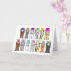 Två rader söta katter med tecknad står upp på baksidan av tassar och håller på med pastellkort för färgad. Korten har brev skrivit på dem med texten "Familjeåterförening". Bilden har en vit bakgrund.
