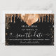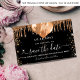 Ett giftigt och trendig Spara datumkortet för en 18:e (eller någon ålder) födelsedagsfest. En klassisk svart bakgrund med faux guld glitter och ballonger. Anpassa och lägg till datum och namn/ålder. Texten: Spara datumet skrivs med ett stort trendig-handskript i stil.