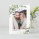 Modern Navy Blue Rustic Watercolor Eucalyptus Grey Bröllop Photo Save the Date som innehåller ditt förlovning-foto och vår vackra Kaliforniens (westerna) eukalyptus-grönt, moderna botaniska viniska gröna och moderna typografi. Elegant modern, men tidlös och klassisk. Denna utformning kombinerar det naturliga inslagen av eukalyptus och visuellt med modern typografi. Perfekt för ett rustiskt eller romantiskt bröllop. Enkel att anpassa med din information för ett modernt, romantiskt datum. Kontakta oss på cedarandstring@gmail.com om du behöver hjälp med designen eller matchande produkter.