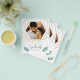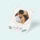 Anpassa det här moderna Spara datum meddelande. Ett framfoto med guld-geometriskt linjer i abstrakt arrangemangt. Spara datumtexten i ett handskrivet stil-teckensnitt. På motsatt sida hittar du ett annat fotoalternativ med redigerbar text.