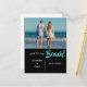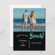 "Kärlek på stranden" Spara datumet" Lägg till ditt foto för att anpassa dig. Svart bakgrund. Lägg till namn och datum för bröllop. Det har varit ett nöje att skapa den här designen under din speciella tid.
