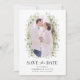 Ta med dig dina speciella gäster med Photo Botanical Save Date med mjuka och elegant botaniska ämnen i sage-, jägare- och skogskaraktär med chic- och snyggt boho ferns och känsliga vita blommigtar, alla handmålade i vackra vattenfärger. Inbjudan ska dina gäster fira din speciella dag med en samling som fångar romantik, skönhet och stollig under säsongen! Hitta koordinationsprodukter i Eleganten Boho Chic Greenery Bröllop Collection.