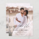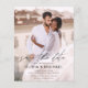 Budgetfoto och personlig på framsidan och baksidan av eleganten och modernt Spara datumbröllopsinbjudningar - innehåller vacker och elegant skripttypografi för den speciella Bröllopsdagen firande.
