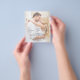 Budgettransparens som täcker foto på anpassningsbar och personlig på framsidan och baksidan av eleganten och modern Spara datumbröllopsinbjudningar - innehåller vacker och elegant skripttypografi för den speciella Bröllopsdagen firande.