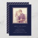 Enkelt, chic och feminin. Detta sparar datumdesignen som användor djup marin blått och vitt text, med en shimmery faux ro guld gräns, för att ange en romantisk ton. Minimal typografi garanterar att gästerna vet att bröllop kommer att vara formellt, samtidigt som de lämnar alla uppgifter via bröllop webbplats.
