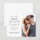 Ett budgetvänligt enkelt och modernt bröllop spara datum-meddelande som innehåller ditt foto och "Lyckligtvis någonsin efter" i en blandning av enkel typografi och ett snyggt-skript med dekorationer. Anpassa din spara datuminformation och lägg till namnen i ett namnteckning skript.