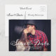 Skicka en snyggt spara vykortet för datum med ett eget foto. Anpassa texten på båda sidor med detaljer. Innehåller ett modernt skriptteckensnitt.