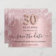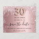 Ett giftigt och trendig Spara datumkortet för ett 30års födelsedag party. rosa-gradientbakgrund som dekoreras med dammig ro rosa och faux glitter droppar och stoft. Anpassa och lägg till datum och namn/text. Texten: Spara datumet skrivs med ett stort trendig-handskript i stil med dekortecken. Nummer 30 med ett stil-teckensnitt med ballong.