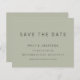 Grönten för mjuk textväxling sparar datumet. Ett budgetmässigt prist mindre än 4,5 x 5,6 tum alternativ. Finns i ett SEMI-GLOSS 110 lb-kort LAGRAR, vilket är standardalternativet (tjockare för inbjudningar), ELLER SATIN AVSLUTAR 80 lb PAPPER LAGRAR (perfekt för bilagor). Kuvert är ett extra som tillval och är något större än det storleka kortet. Enkel elegans med Spara datum i ett modernt set skript.Resten av texten som du enkelt kan anpassa.Visar här svart på grönten för mjuk blek, men färgen och bakgrunden kan ändras om du vill genom att anpassa ytterligare alternativ.