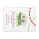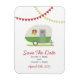 Spara datumet bröllop-magnet med en illustration av släpvagnen med grönt vintage med en fönsterruta med fullt av färgstarka blommor. Röd och gult buntar överst. Leta efter matchande artiklar på Jill's Paperie.