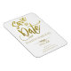 Den här magneten är designad med vit bakgrund och faux guld löv accents! Gör det underbart att spara datumet för en elegant-händelse.