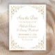 Den här vintage-inspirerade formella bröllop spara datum-kortet innehåller texten i guld färgad-skript och serif typsnitt, som är framtagen av ett känsligt vintage guld-motiv. Ram upprepas i motsatt riktning.