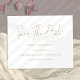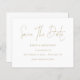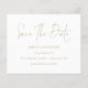 Ett ekonomiskt alternativ i BUDGET på en mindre storlek på 4,5 x 5,6 tum (110 lbs vikt), som är av samma tjocklek som ett vykort (är dock inte lämpligt för använda som vykort). OBSERVERA ATT DET FINNS EN inbjudan per lakan. Budget Minimalist Guld Script Bröllop spara datum. Enkel elegans med Spara datumet i ett modernt skript.Resten av texten kan du enkelt anpassa. Här i guld på vitt visas hur text och färg i bakgrunden kan ändras om du vill med hjälp av alternativet Anpassa ytterligare.