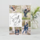 Ta din 5 bästa bilder från förlovningens fotosession med 4 för framsidan och en för baksidan. Den har en handskriftssymbol som säger Spara datumet.