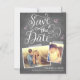 Med Whimsical och snyggt sparar du 2-fotoannonseringsvykortet som innehåller ett modernt kalligrafiskript på en kritbakgrund med fotoögonblicksbilder.