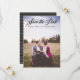 Det här klassiska Spara datumfotokortet kan användas för alla teman - rustiskt, bohemiskt, till och med modernt bröllop. "Spara our Date" skrivs för hand i elegantens kalligrafi. Svart och grått rand på baksidan gör att klassen blir felfri. Anpassa den här designen genom att lägga till namn och information och ersätta fotot med eget. Du kan också flytta texten "Spara vårt datum" till vilken plats som helst på bilden genom att klicka på "anpassa" och flytta runt den. Detta utkast har lagts fram av Kattunge Paj Press.