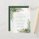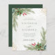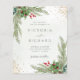 Vackert och prisvärt Spara datumkortet med handmålade botaniska vattenfärgbilder av vintergröna, gräs och grisen grenar, koner och häckbär med guld glitter. Valet av perfekt för vinter eller jul helgdag kallat bröllop.