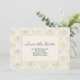 Spara datumkorten med en elegant mönster med guld färgad humla i en upprepande mönster på en färgad med grädde.