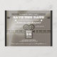 Modern film, film, biograf eller teater biljett - spara datumkort med brud och grom som stjärnfilmstjärnor par och bröllop datum skrivna på videokameran.