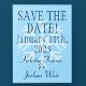 Spara-datum för isblå snöflingskidor vykort