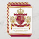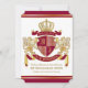 Skapa din mycket egen aristokratiska Jacka av Arm, Emblem, Insignia eller Familjekort med den här vackra, klassiska eskort- eller sköldesignen. Crimsonrött mönster dekorerar en sköld som är täckt med guldfärgat krona och täckt av medeltida heraldisk lejon eller griffin. Byt ut exempeltexten mot en egen personlig. En könsneutral utformning som kommer att fungera för familjer, grupper, par eller individer. Gör en underbar gåva till Bröllop, årsdag, födelsedag, Pension, marknadsföring, Far, Bachelor Party, Möhippa, Studenten, Internationell, Heraldry Day, Medieval eller Fantasy-temed party och andra särskilda tillfällen.