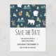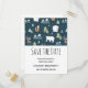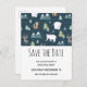 Spara datumet för julbokkortet i party med ett viskigt festligt mönster. Polar, renar, träd, rävar och snöflingor. Mörk grönt.