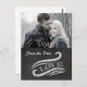Chalkboard bilder är populärt och det här Spara datum Bröllop-kortet är särskilt elegant. Ditt foto (svartvitt eller färg) är överst, med en söt rulla som ramar KÄRLEK i ord. Kortets baksida har gott om utrymme för anpassningsbarnas text i svart och grått.