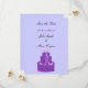 En klassdesign med en elegant lila bröllop tårta med blommor av lila och rosa överst. En mjuk, mjuk bakgrund. Anpassa med datum för namn och bröllop efter behov.