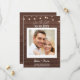 Grattisar på din förlovning! Nästa steg är att få familj och vänner att veta att ni är engagerade i att gifta er och att de vill spara datumet för bröllop. Underbart vitt ljus eller ljus med brunt rustiskt träbakgrund. Den här designens högdager är ett av dina favoriter porträtt som ett par.