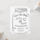 Skickar Spara datummeddelanden från Bröllop till vänner och familj med den här söta burk-ritningen av den rustiska mason. Underbar för en utomhus eller en lada bröllop!